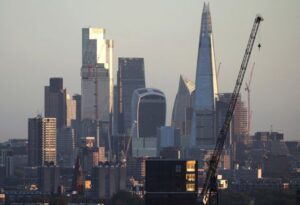 FILE PHOTO: The City of London financial district can be seen in the distance beyond housing developments in London, Britain, October 8, 2022. REUTERS/Henry Nicholls