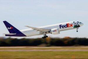 The “FedEx Panda Express” aircraft takes off with giant pandas Xiao Qi Ji, Tian Tian and Mei Xiang onboard for their return trip to China at Washington Dulles International Airport in Dulles, Virginia, U.S., November 8, 2023. REUTERS/Julia Nikhinson/File photo