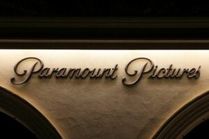 FILE PHOTO: The logo of Paramount Pictures studios is pictured after the Writers Guild of America (WGA) said it reached a preliminary labor agreement with major studios in Los Angeles, California, U.S., September 24, 2023. REUTERS/David Swanson/File Photo
