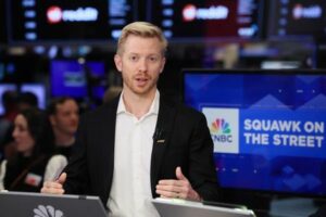 CEO of Reddit Steve Huffman attends an interview with CNBC, at the New York Stock Exchange (NYSE) in New York City, U.S., March 21, 2024. REUTERS/Brendan McDermid
