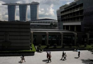 FILE PHOTO: People wearing protective masks as a precaution against the coronavirus disease (COVID-19) walk during lunch hour at the central business district in Singapore, December 14, 2020. REUTERS/Edgar Su