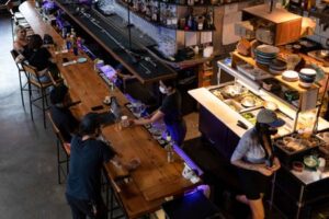 FILE PHOTO: Customers drink and dine inside the restaurant “Martha” after showing proof of their coronavirus disease (COVID-19) vaccinations upon entering, in Philadelphia, Pennsylvania, U.S., August 7, 2021. REUTERS/Hannah Beier