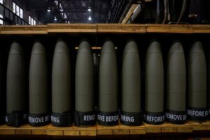 FILE PHOTO: 155mm artillery shells are packed for shipping at the Scranton Army Ammunition Plant in Scranton, Pennsylvania, U.S., February 16, 2023. REUTERS/Brendan McDermid/File Photo