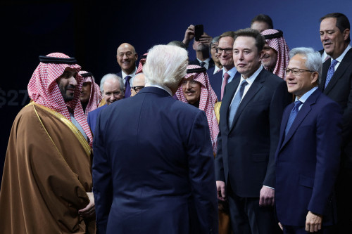 Trump and bin Salman applauded $270 billion in agreements and sales signed between dozens of companies at the Kennedy Center conference, including planned purchases of 600,000 Nvidia AI chips by HUMAIN, a government-backed Saudi AI firm.
