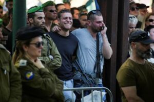 Friends and family mourn Lieutenant Colonel Roee Yohay Yosef Mordechay, 31, killed in northern Gaza during the ongoing ground operation by Israel’s military in the Gaza Strip, amid the ongoing conflict between Israel and the Palestinian Islamist group Hamas, at his funeral in Tel Aviv, Israel, January 7, 2024. REUTERS/Alexandre Meneghini