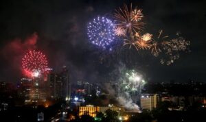 Fireworks explode over the Central Park during the New Year’s Eve celebrations in Nairobi, Kenya, December 31, 2023. REUTERS/Thomas Mukoya